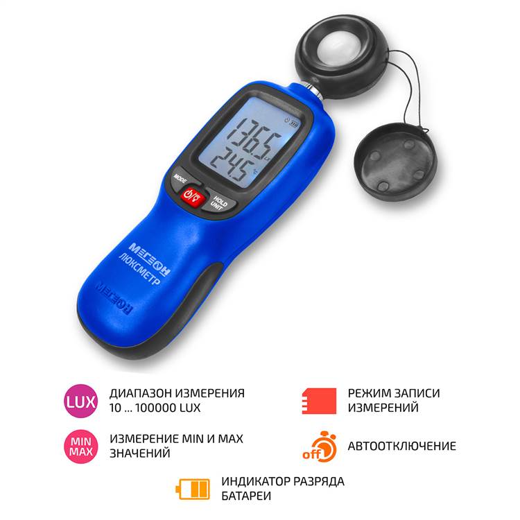 МЕГЕОН 21001 - новинка в модельном ряду цифровых люксметров. Внесён в ГРСИ под номером 90181-23. Модель имеет эргономичную форму корпуса и удобное расположение органов управления, благодаря чему достигается максимальное удобство при эксплуатации. Измерить даёт возможность измерять показатели света в пределах 10 ... 100000 люкс. Прекрасно подходит для применения в научных сферах, обучении, промышленности при разработке светоизлучающего оборудования, а также осветительных приборов. Станет незаменимым помощником при аттестации рабочих мест с возможностью замера дифференциальных, максимальных и минимальных значений. Все элементы управления находятся на передней панели, а на задней стенке расположено универсальное крепление для штатива. Изделие по достоинству оценят любители и профессионалы.
