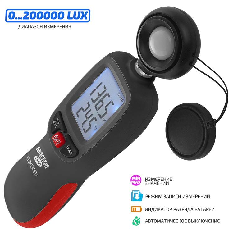 Широкий диапазон измерения 0 ... 200000 лк