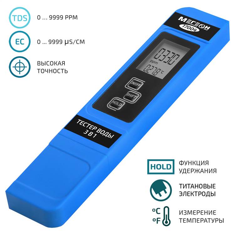 МЕГЕОН 17004 Тестер воды 3 в 1