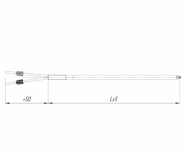 Термопара ТП301 в керамических бусах с длиной погружаемой части от 25 до 3600мм и диаметром термоэлектродов от 0,5 до 3,2мм.