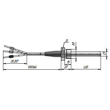 Термосопротивление с кабельным выводом ТС103 со штуцером от 25 до 1000мм и диаметром от 4 до 10мм.