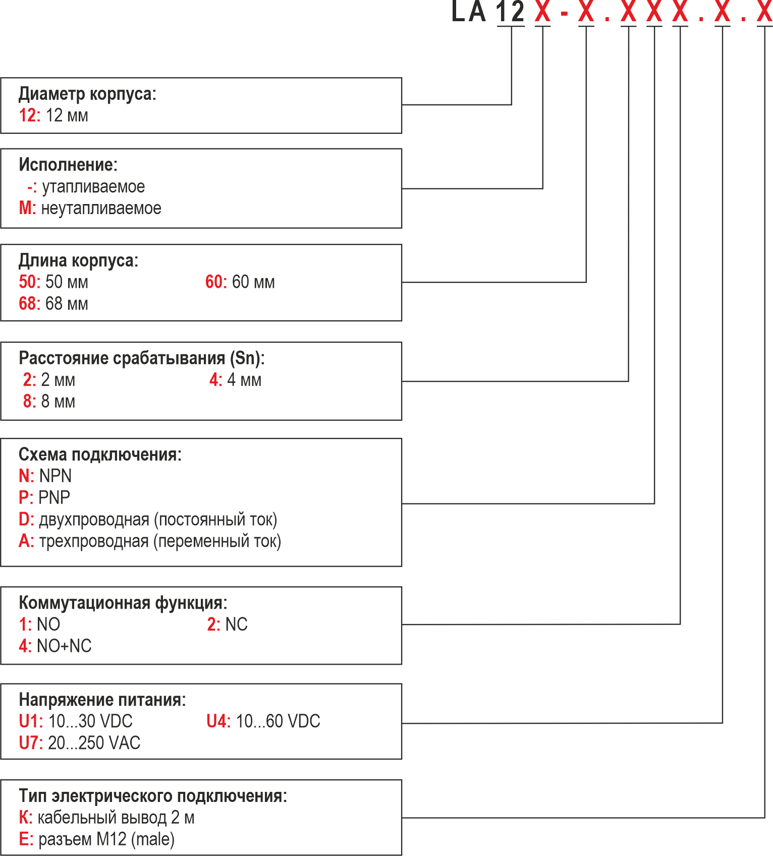Индуктивный бесконтактный выключатель серии LA12 — это датчик цилиндрической формы, реагирующий на появление металлического предмета в зоне его действия.